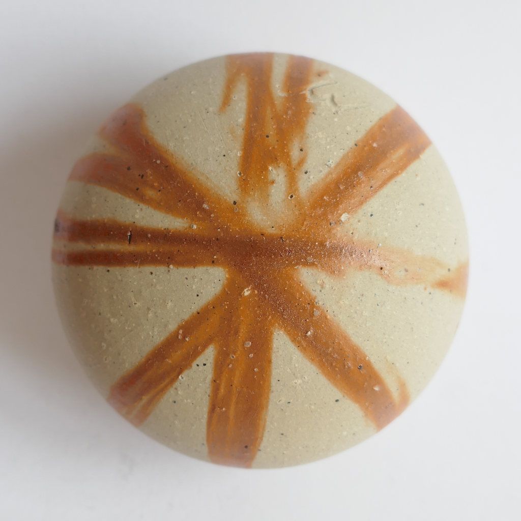 Hidasuki 緋襷 est un effet décoratif emblématique du Bizen-yaki, obtenu en enroulant des brins de paille de riz autour des pièces avant la cuisson. Durant la cuisson dans un four à bois, la paille brûle et ses composants (principalement le potassium) réagissent avec l’argile pour laisser des marques rouge-orangé en forme de rubans, de stries ou de flammes. Ces motifs contrastent avec la surface brun-violacé du Bizen brut. Le terme signifie littéralement « écharpe écarlate » ou « corde rouge ». Très apprécié, le Hidasuki allie tradition, hasard et poésie visuelle, incarnant l’esthétique du feu et de la transformation naturelle.